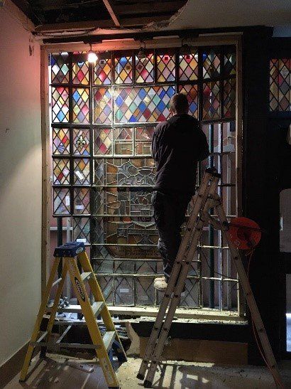 We are very pleased with the workmanship, professionalism and diligence that Ben has shown on his part of the project and will be happy to see the windows once again illuminated when the restaurant is re-opened.
